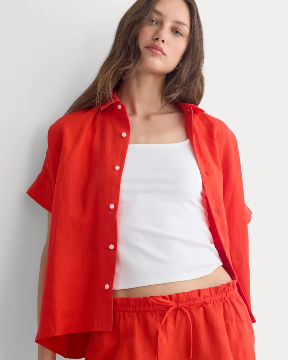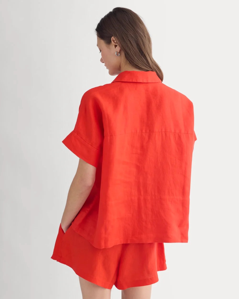 Boxy-Leinenhemd mit lockerer Passform und klassischem Button-Down-Design