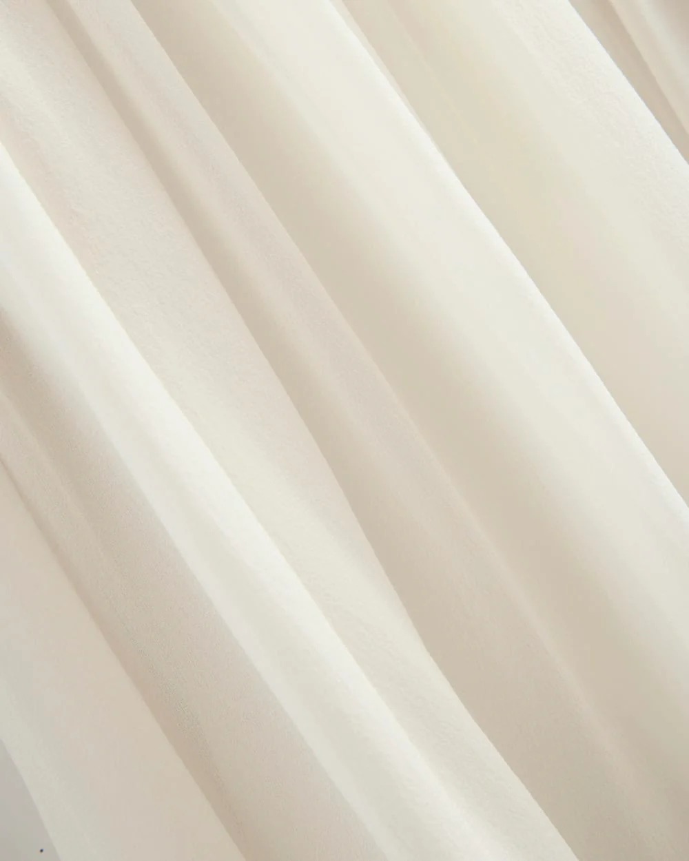 Das Kleid besteht aus weichem, fließendem Seiden-Georgette-Material, das angenehm auf der Haut liegt und eine elegante, leichte Silhouette erzeugt. Die gedrehten Falten verleihen dem Kleid Textur und Form, während die lockere Passform ein komfortables Tragegefühl ermöglicht.
